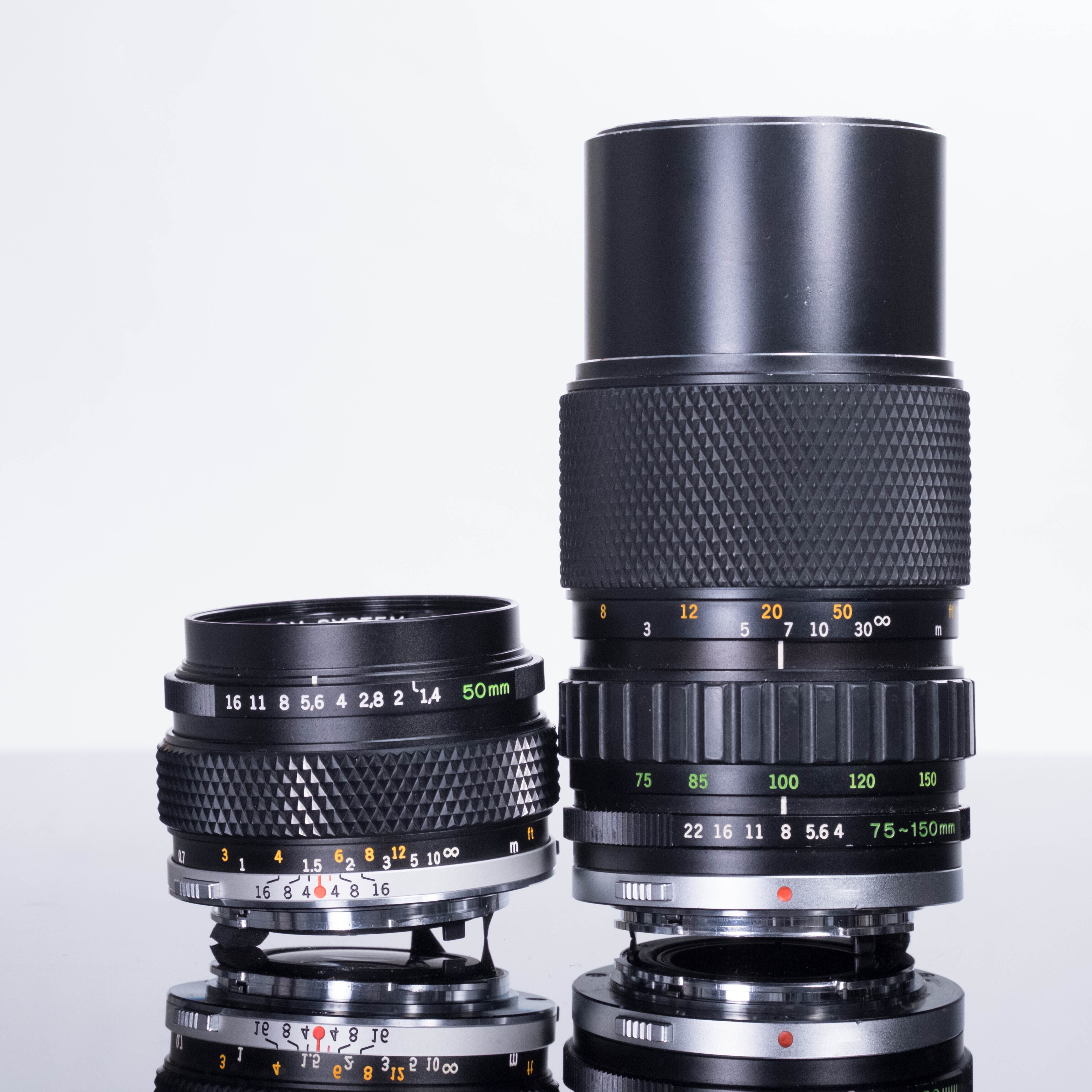 付属するレンズは、50mm 標準レンズと75-150mm中望遠ズームの2本です。