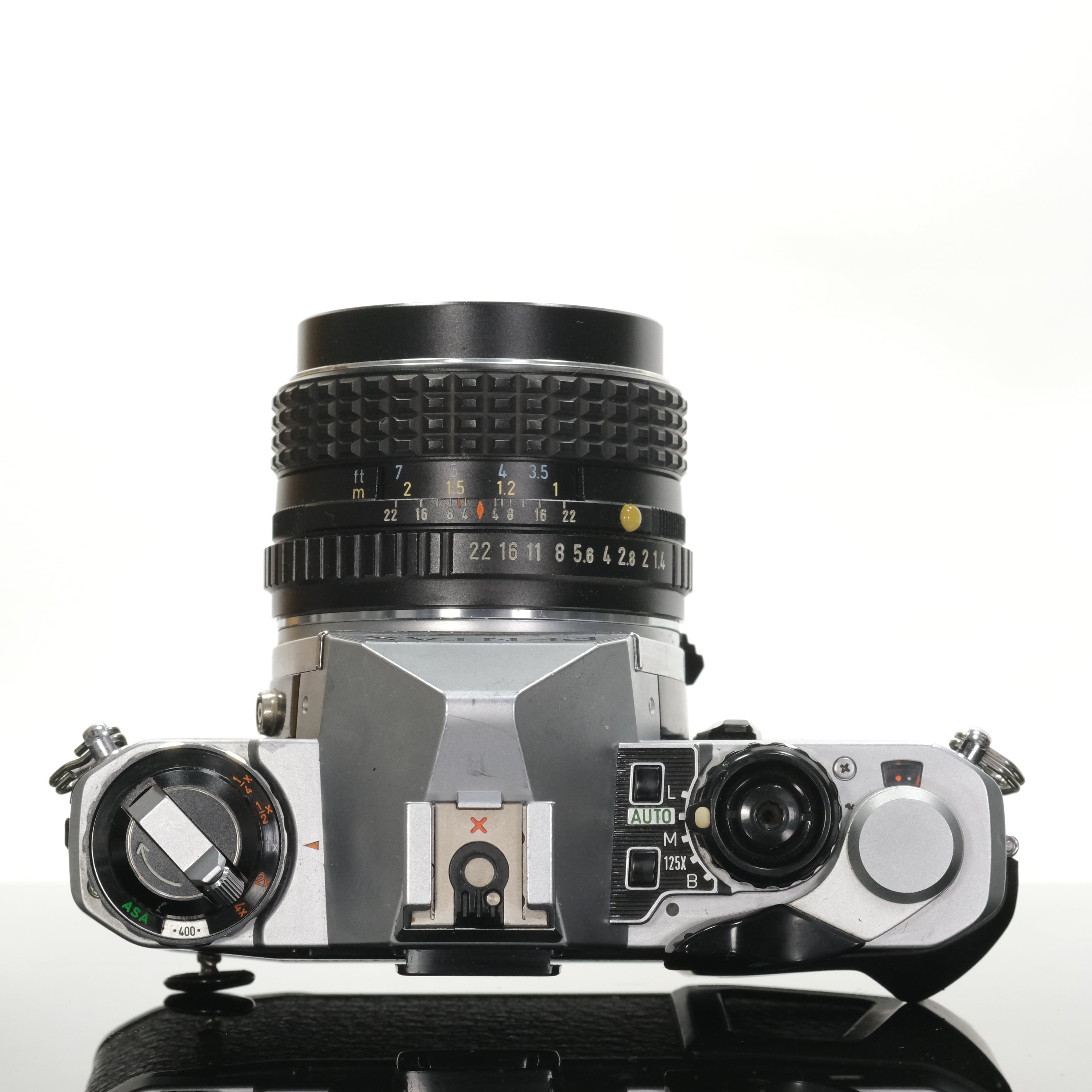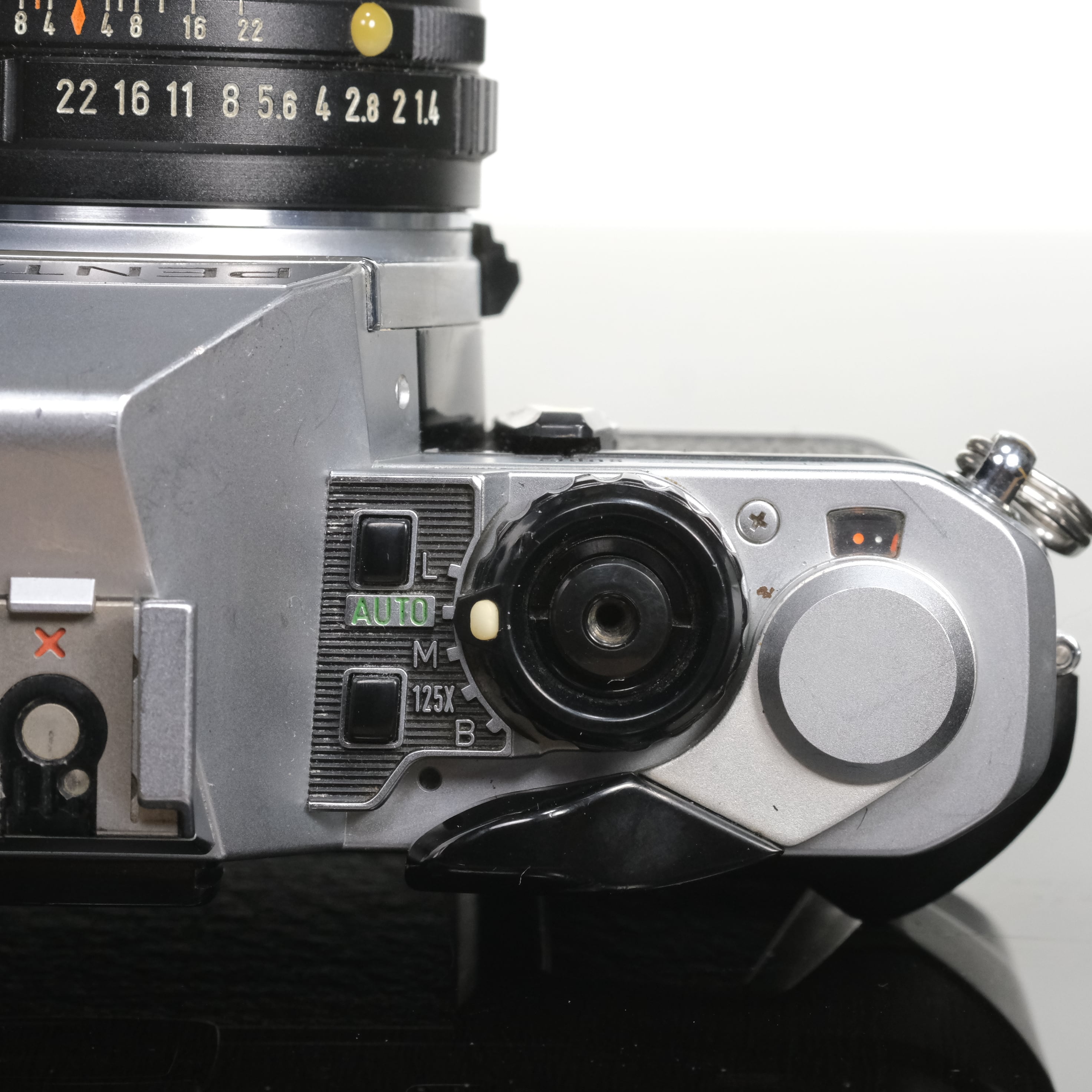 ペンタックスMシリーズのMEにマニュアル露出を追加し、最高速シャッタースピードも1/2000秒にスペックアップさせた高級機種がペンタックスME superです。